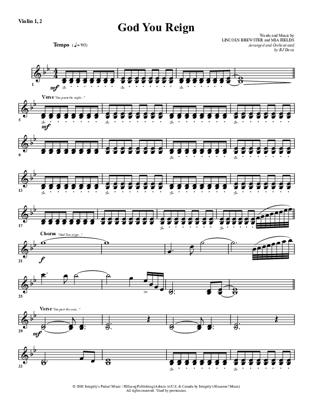 Download the Violin sheet music for God You Reign by G3 Worship, from the album This Is My Story.