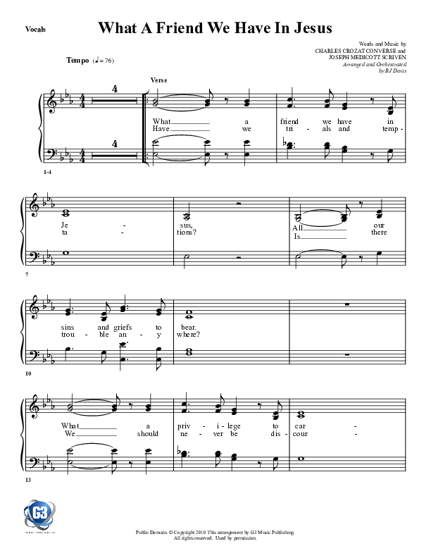 Download the sheet music for What A Friend We Have In Jesus by G3 Worship, from the album Hymns Volume 1.