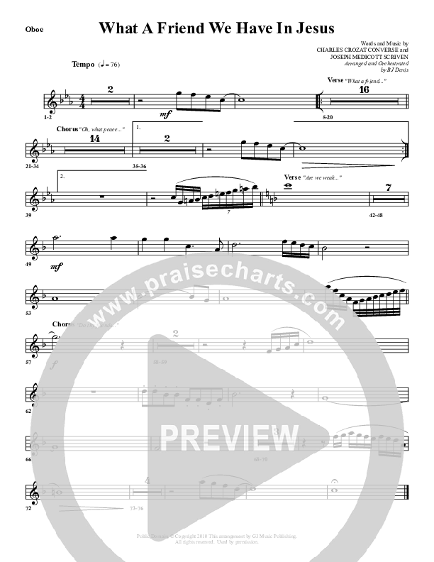 What A Friend We Have In Jesus Oboe Sheet Music PDF (G3 Worship)