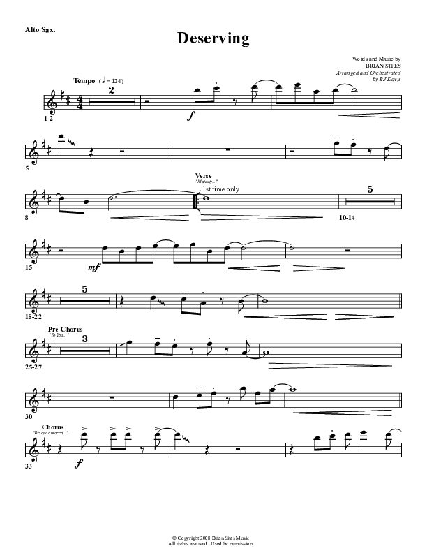 Download the AltoSax sheet music for Deserving by G3 Worship, from the album Revive Us Again.