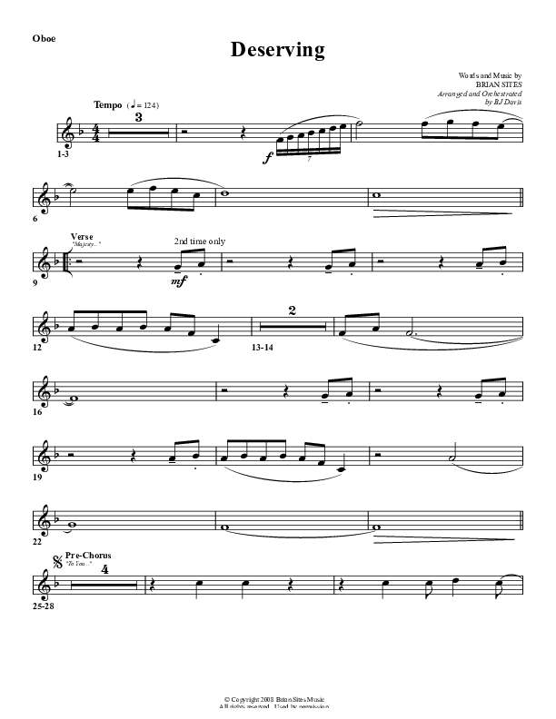 Deserving Oboe Sheet Music PDF (G3 Worship)