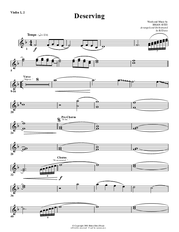 Deserving Violin Sheet Music PDF (G3 Worship)