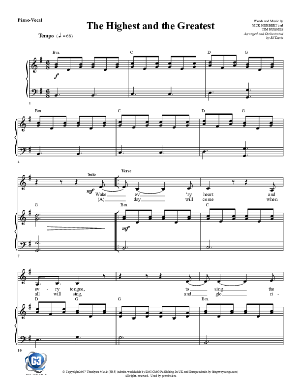 The Highest And The Greatest Sheet Music PDF (G3 Worship)