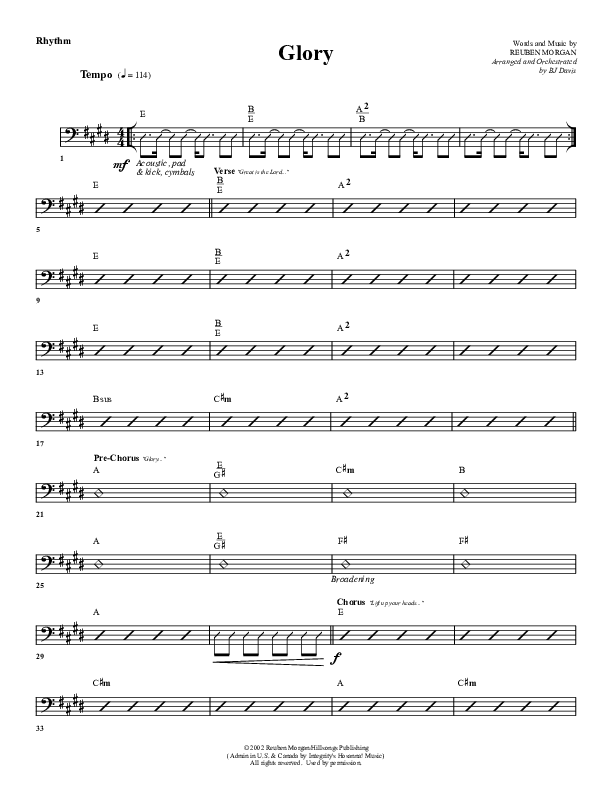 Download the Rhythm Chart for Glory by G3 Worship, from the album You Are Holy.