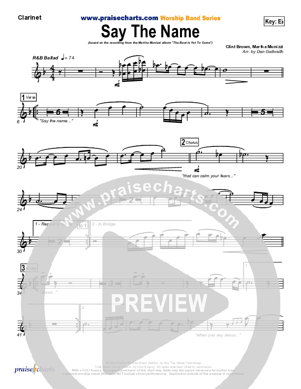Download the Orchestration for Say The Name by Martha Munizzi, from the album The Best Is Yet To Come. This song was arranged by Daniel Galbraith in the key of Eb, F.