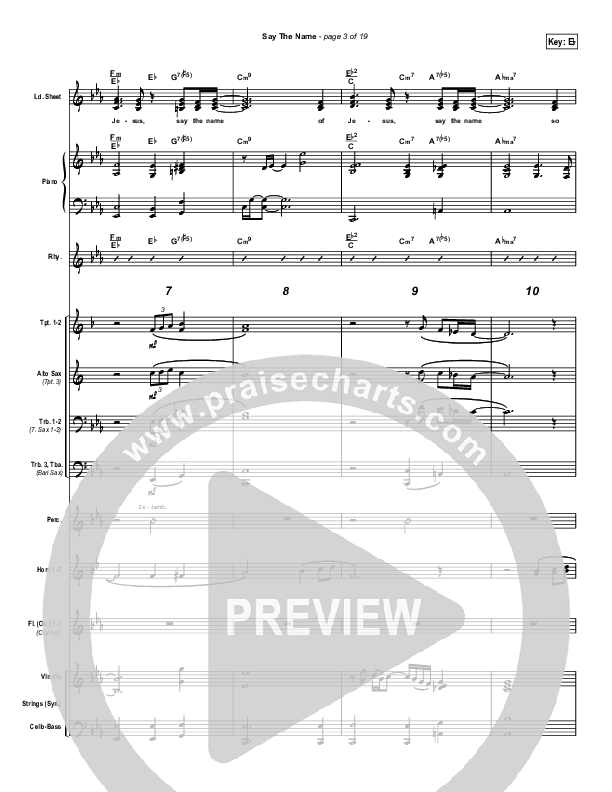 Download the Orchestration for Say The Name by Martha Munizzi, from the album The Best Is Yet To Come. This song was arranged by Daniel Galbraith in the key of Eb, F.