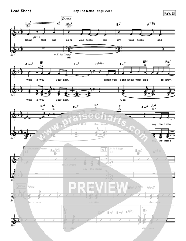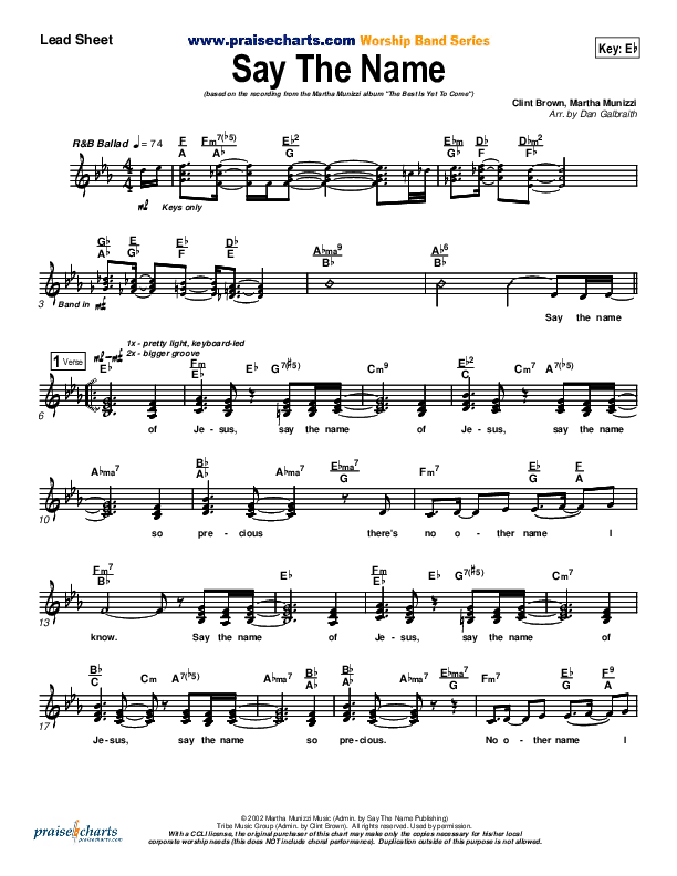 Download the sheet music for Say The Name by Martha Munizzi, from the album The Best Is Yet To Come. This song was arranged by Daniel Galbraith in the key of Eb, F.