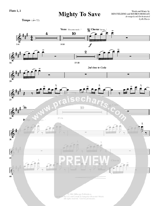 Mighty To Save Flute Sheet Music PDF (G3 Worship)