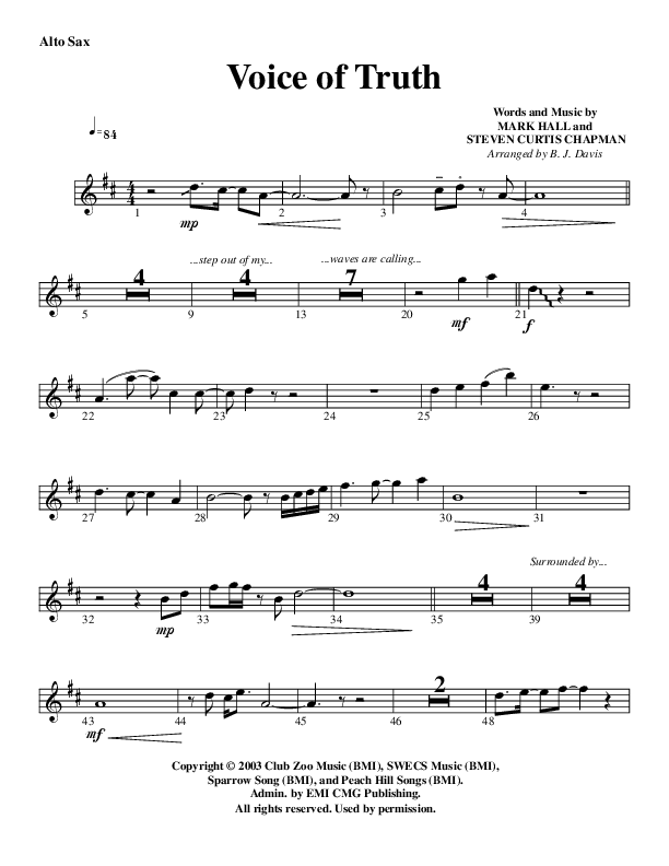 Voice of Truth Alto Sax Sheet Music PDF (G3 Worship)