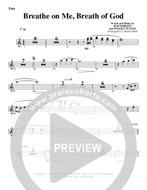 Breathe On Me Breath Of God Flute Sheet Music PDF (G3 Worship)