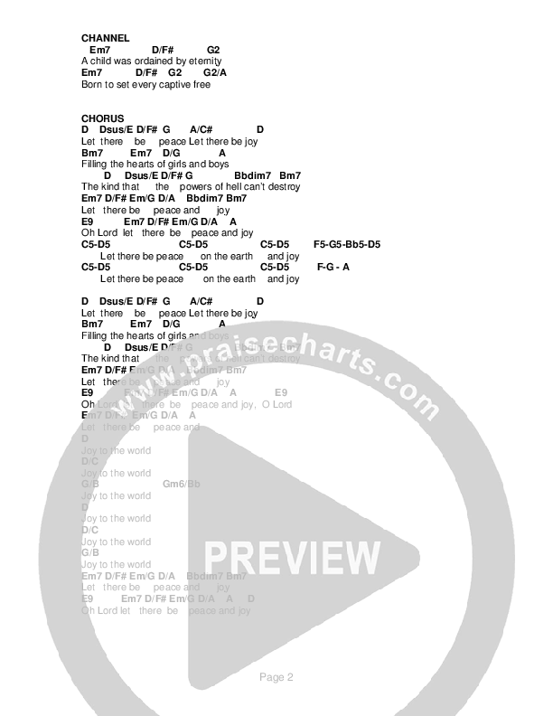 Download the PDF Chord Charts for Let There Be Peace And Joy by G3 Worship, from the album Giving Again.
