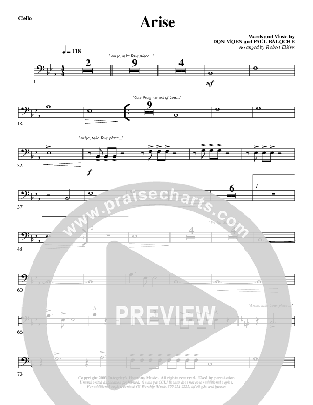 Download the Cello sheet music for Arise by G3 Worship, from the album What Wondrous Love.