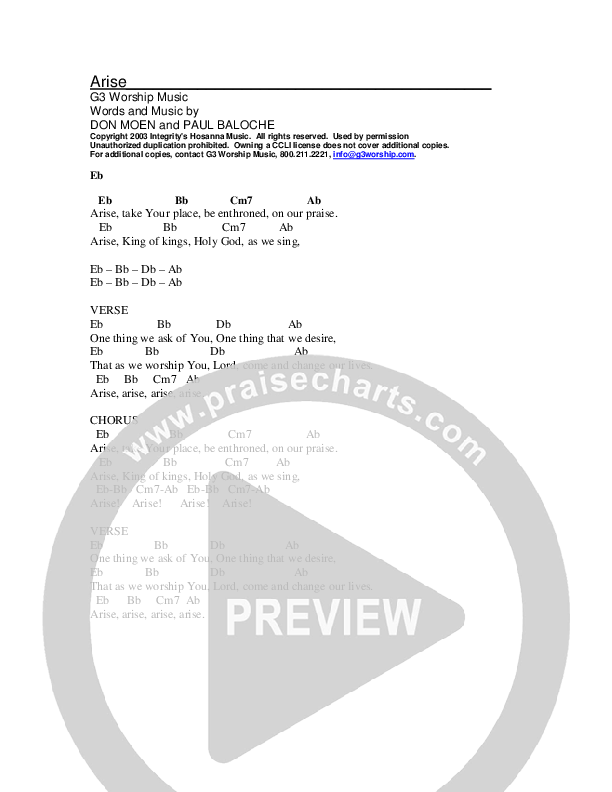 Download the PDF Chord Charts for Arise by G3 Worship, from the album What Wondrous Love.