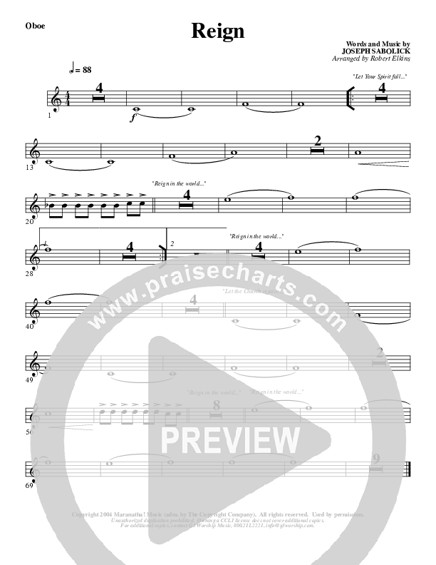Reign Oboe Sheet Music PDF (G3 Worship)