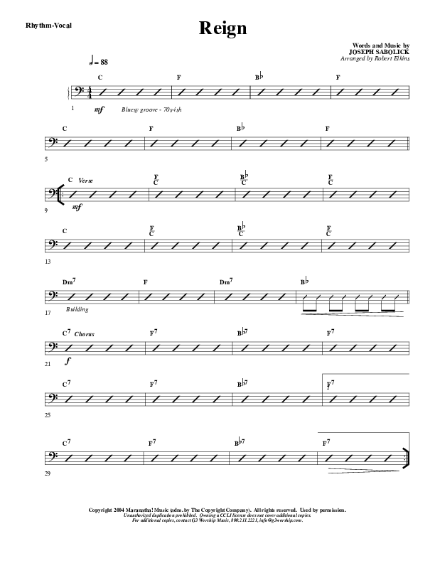 Download the Rhythm Chart for Reign by G3 Worship, from the album What Wondrous Love.