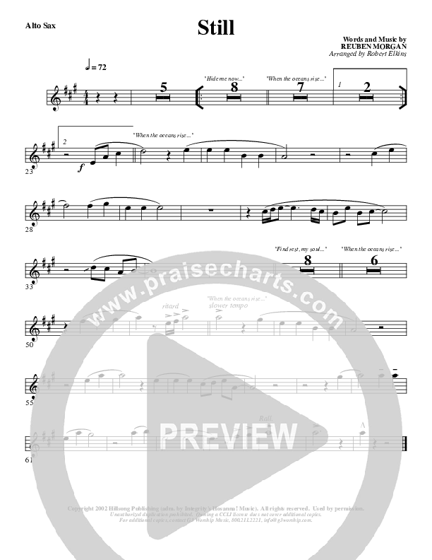 Still Alto Sax Sheet Music PDF (G3 Worship)