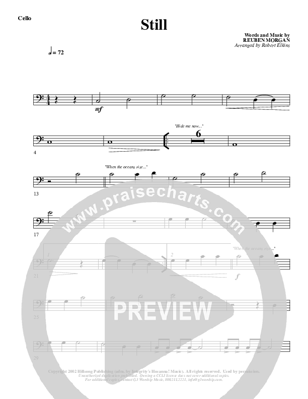 Download the Cello sheet music for Still by G3 Worship, from the album What Wondrous Love.
