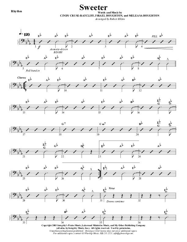 Download the Rhythm Chart for Sweeter by G3 Worship, from the album I Stand Amazed.
