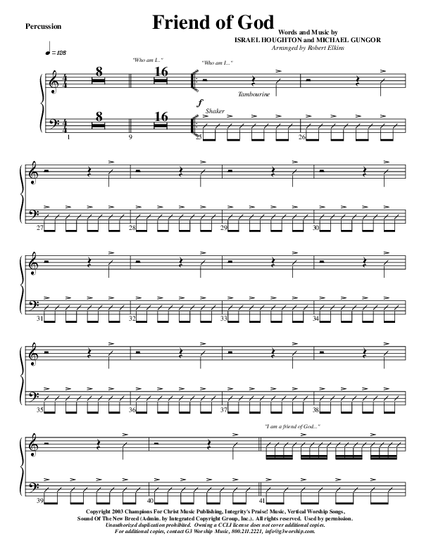 Friend Of God Percussion Sheet Music PDF (G3 Worship)
