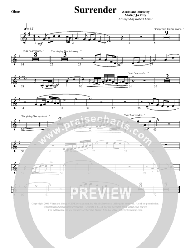 Surrender Oboe Sheet Music PDF (G3 Worship)