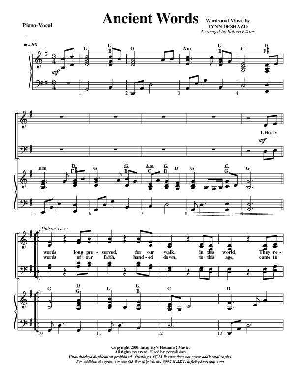 Download the sheet music for Ancient Words by G3 Worship, from the album My God My King.
