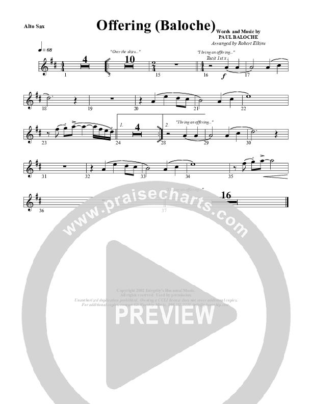 Download the AltoSax sheet music for Offering by G3 Worship, from the album My God My King.