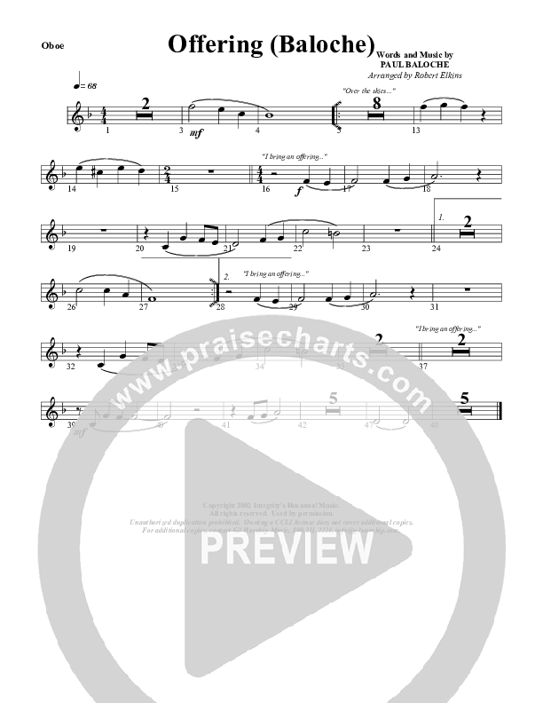 Offering Oboe Sheet Music PDF (G3 Worship)
