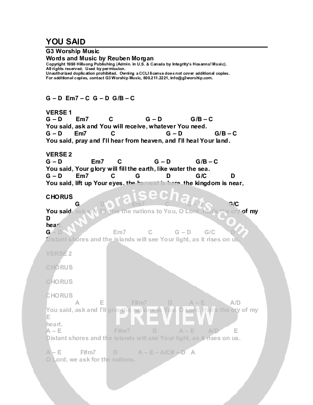 You Said Chords PDF (G3 Worship)