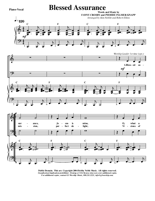 Blessed Assurance Sheet Music PDF (G3 Worship)