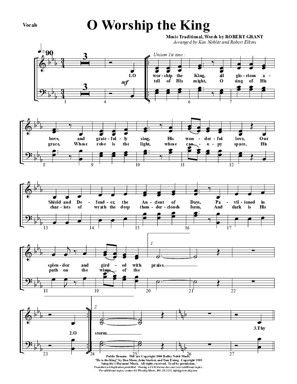 Download the PDF Chord Charts for O Worship The King by G3 Worship, from the album Doxology Of Praise. This song was arranged by Kim Noblitt / Robert Elkins in the key of Eb.