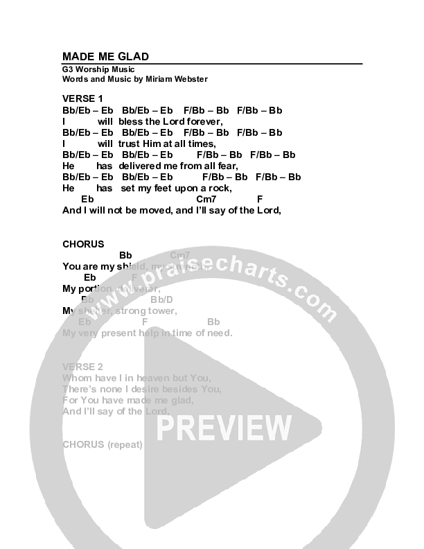 Download the PDF Chord Charts for Made Me Glad by G3 Worship, from the album Come Light Your World.