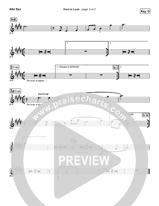 Here Is Love Alto Sax Sheet Music PDF (Matt Redman / Passion)
