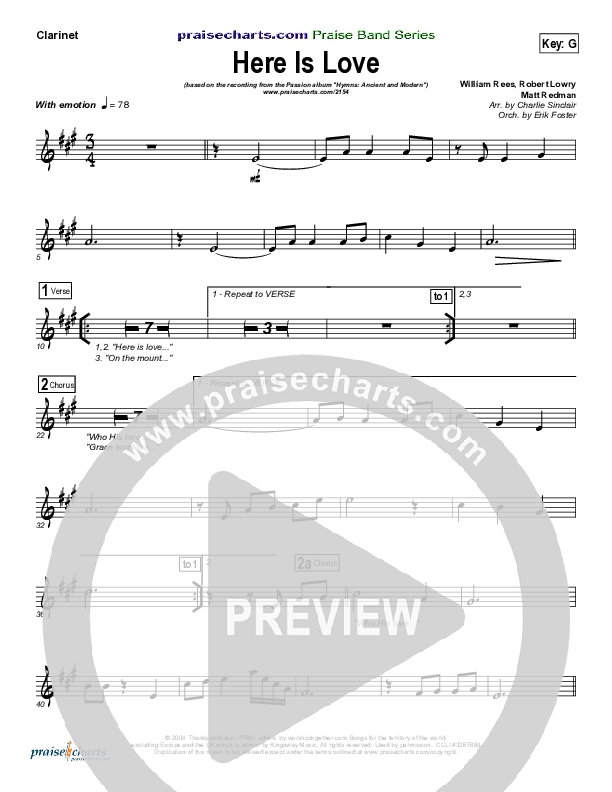 Download the Orchestration for Here Is Love by Matt Redman / Passion, from the album Passion: Hymns Ancient and Modern. This song was arranged by Erik Foster / Charlie Sinclair in the key of F, G.