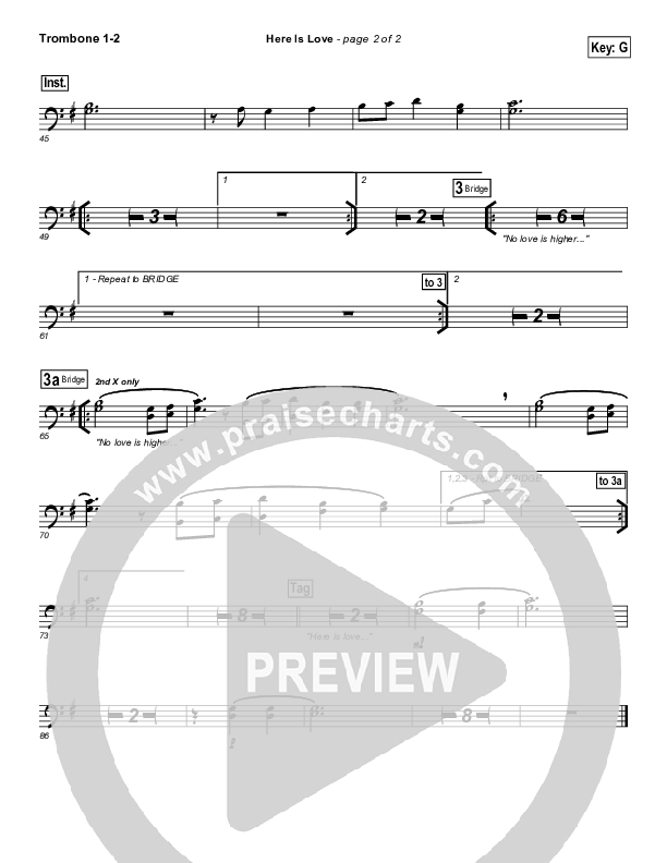 Here Is Love Trombone Sheet Music PDF (Matt Redman / Passion)