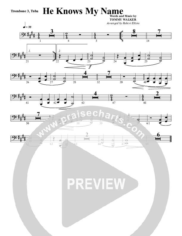 He Knows My Name Trombone/Tuba Sheet Music PDF (G3 Worship)