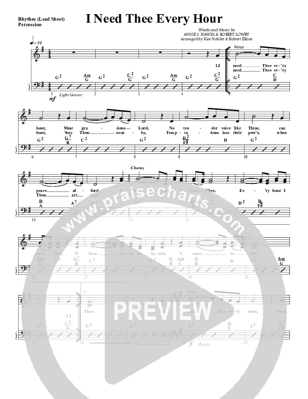 I Need Thee Every Hour Percussion Sheet Music PDF (G3 Worship)