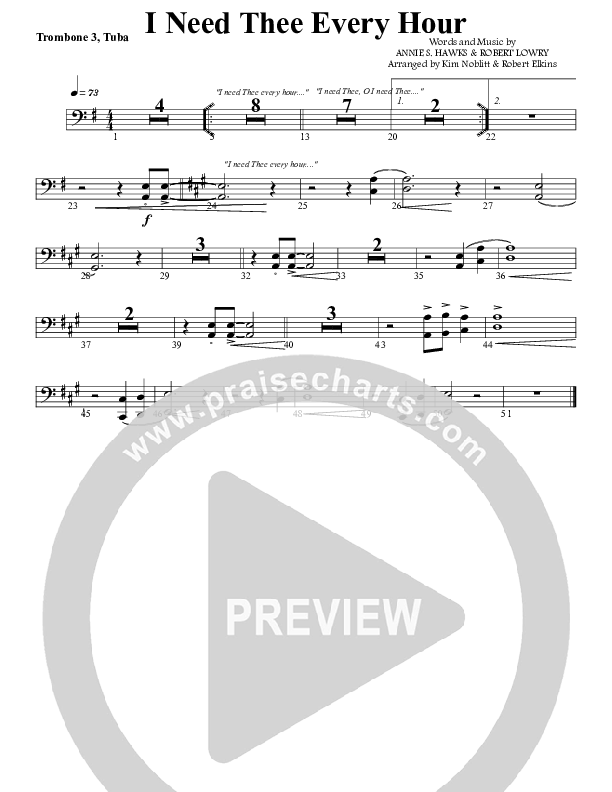 I Need Thee Every Hour Trombone/Tuba Sheet Music PDF (G3 Worship)