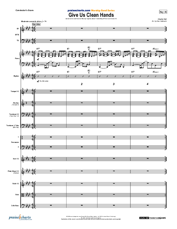 Download the Orchestration for Give Us Clean Hands by Charlie Hall, from the album Be Glorified. This song was arranged by Daniel Galbraith in the key of Ab, G.