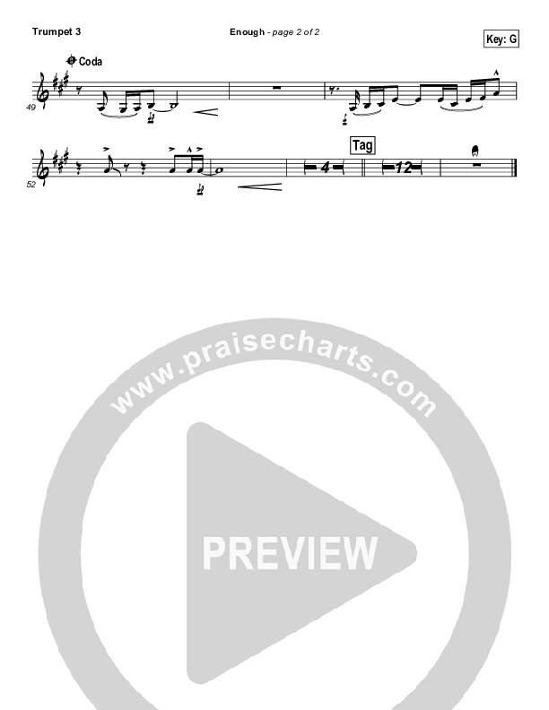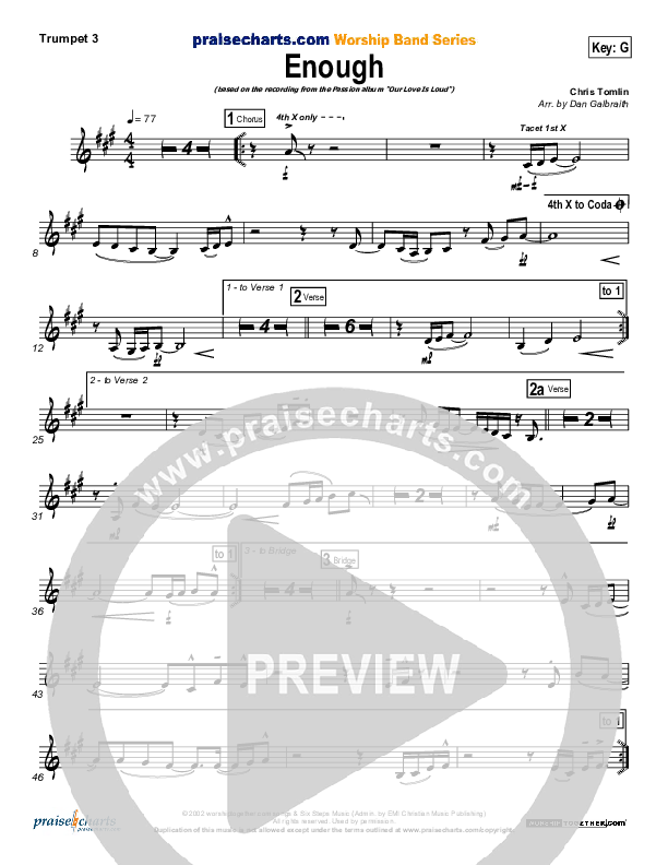Download the Trumpet 3 sheet music for Enough by Chris Tomlin / Passion, from the album Not To Us. This song was arranged by Daniel Galbraith in the key of Ab, G.