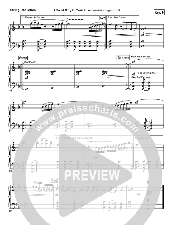Download the Orchestration string parts for I Could Sing Of Your Love Forever by Delirious / Passion, from the album Cutting Edge. This song was arranged by Daniel Galbraith in the key of E, F.