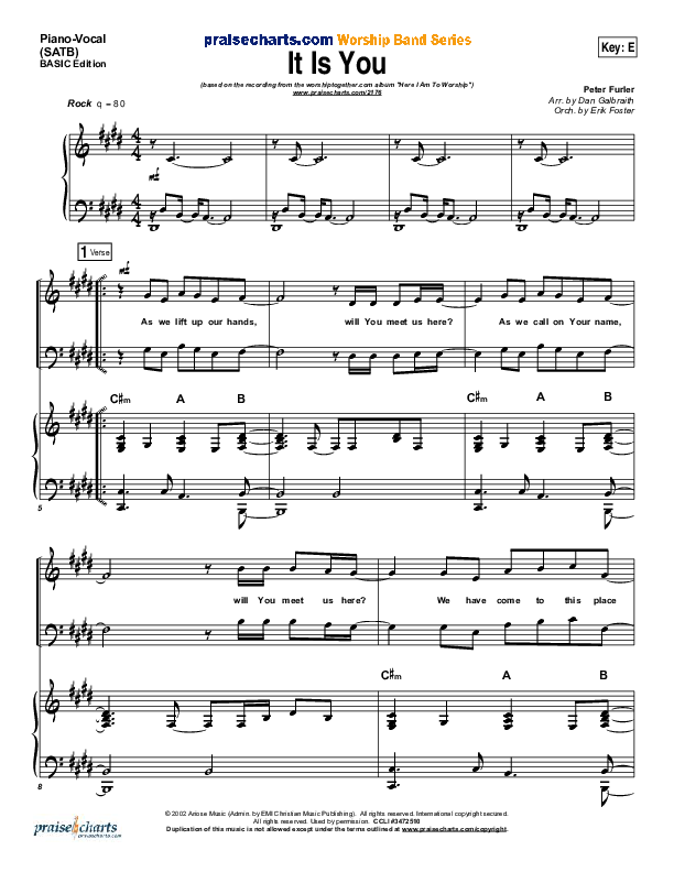 Download the sheet music for It Is You by Newsboys, from the album Adoration. This song was arranged by Daniel Galbraith / Erik Foster in the key of E, G.