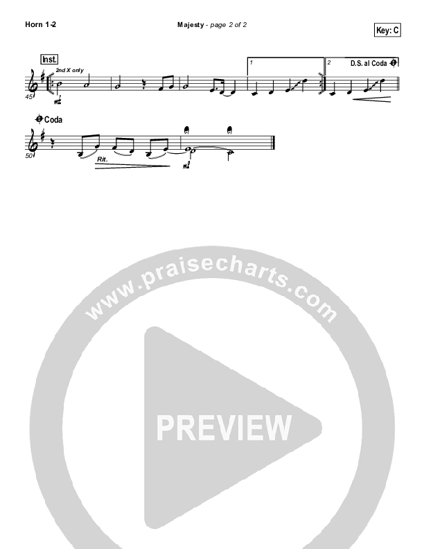 Download the Orchestration brass parts for Majesty by Delirious, from the album Here I Am To Worship (Vol. 1). This song was arranged by David Ritter in the key of C, Db.