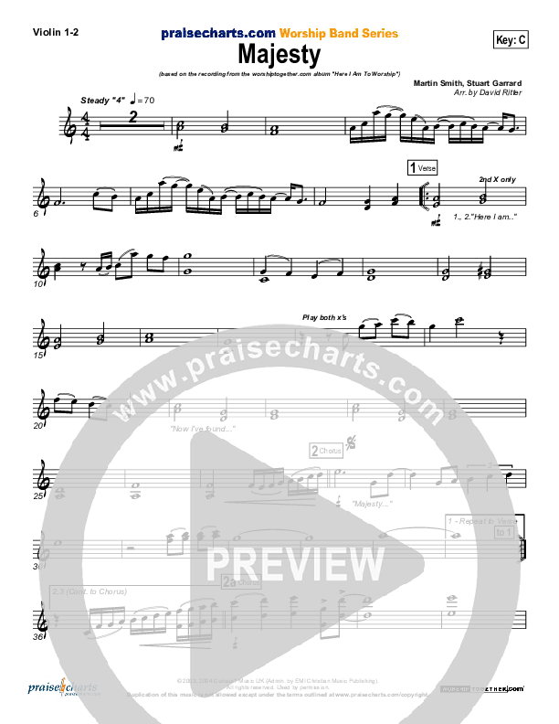 Download the Violin sheet music for Majesty by Delirious, from the album Here I Am To Worship (Vol. 1). This song was arranged by David Ritter in the key of C, Db.