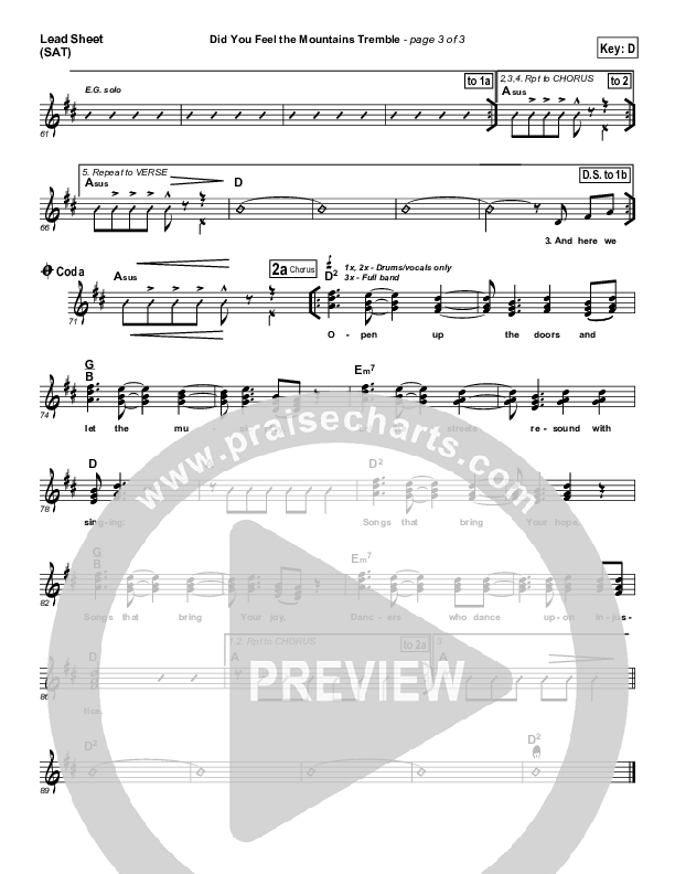 Download the sheet music for Did You Feel the Mountains Tremble by Delirious / Passion, from the album Cutting Edge. This song was arranged by Frank Ralls in the key of Bb, C, D.