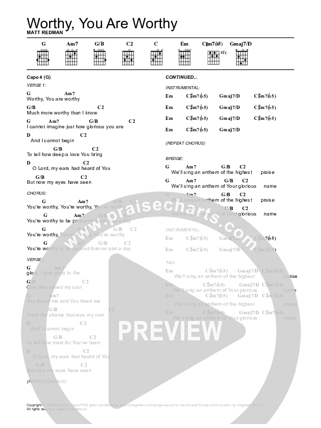 Worthy Chords PDF (Matt Redman)