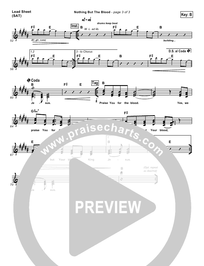 Download the Orchestration for Nothing But The Blood by Matt Redman, from the album FaceDown. This song was arranged by Daniel Galbraith in the key of A, B.