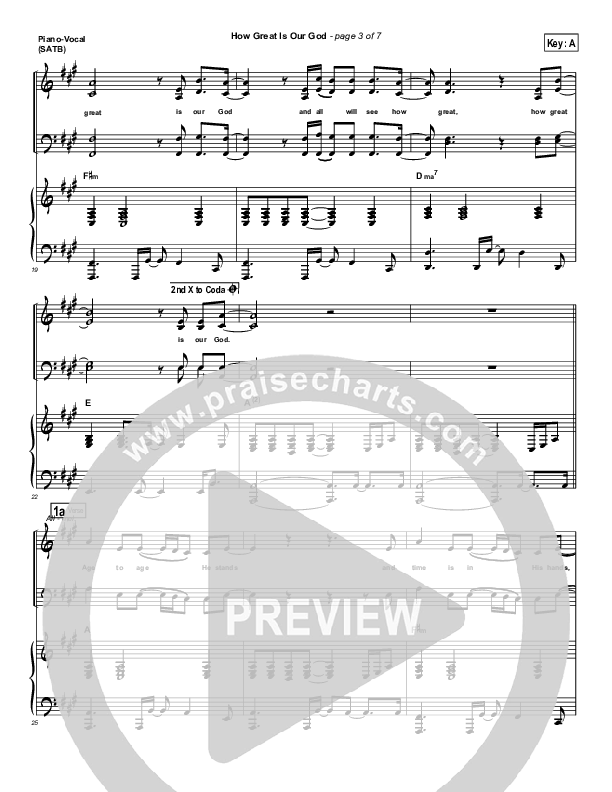 Download the sheet music for How Great Is Our God by Chris Tomlin, from the album Arriving. This song was arranged by Daniel Galbraith in the key of A, Bb, C, Db.
