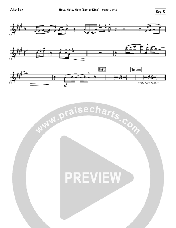 Download the AltoSax sheet music for Holy Holy Holy (Savior King) by Gateway Worship, from the album Great Great God. This song was arranged by Daniel Galbraith / Brad Henderson in the key of Bb, C.