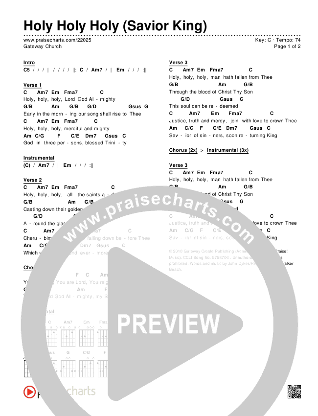 Holy Holy Holy (Savior King) Chords PDF (Gateway Worship)