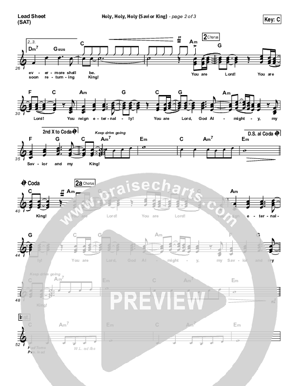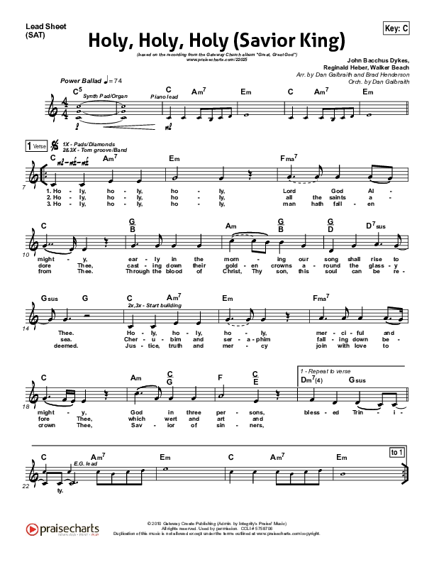 Download the sheet music for Holy Holy Holy (Savior King) by Gateway Worship, from the album Great Great God. This song was arranged by Daniel Galbraith / Brad Henderson in the key of Bb, C.